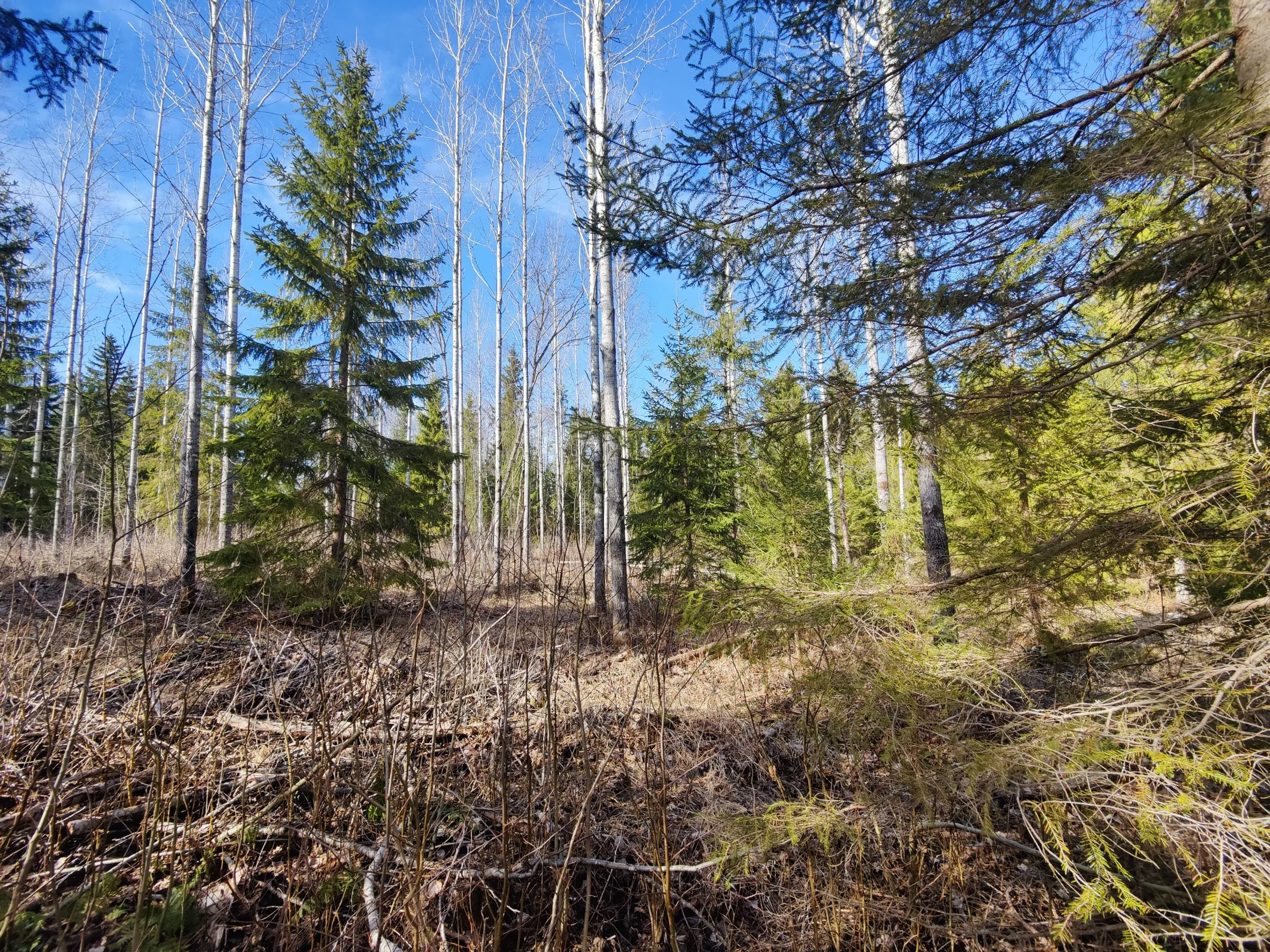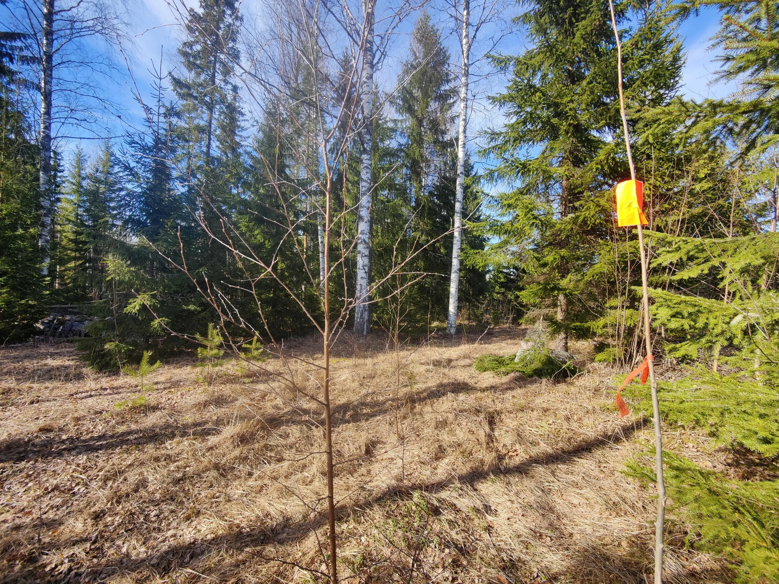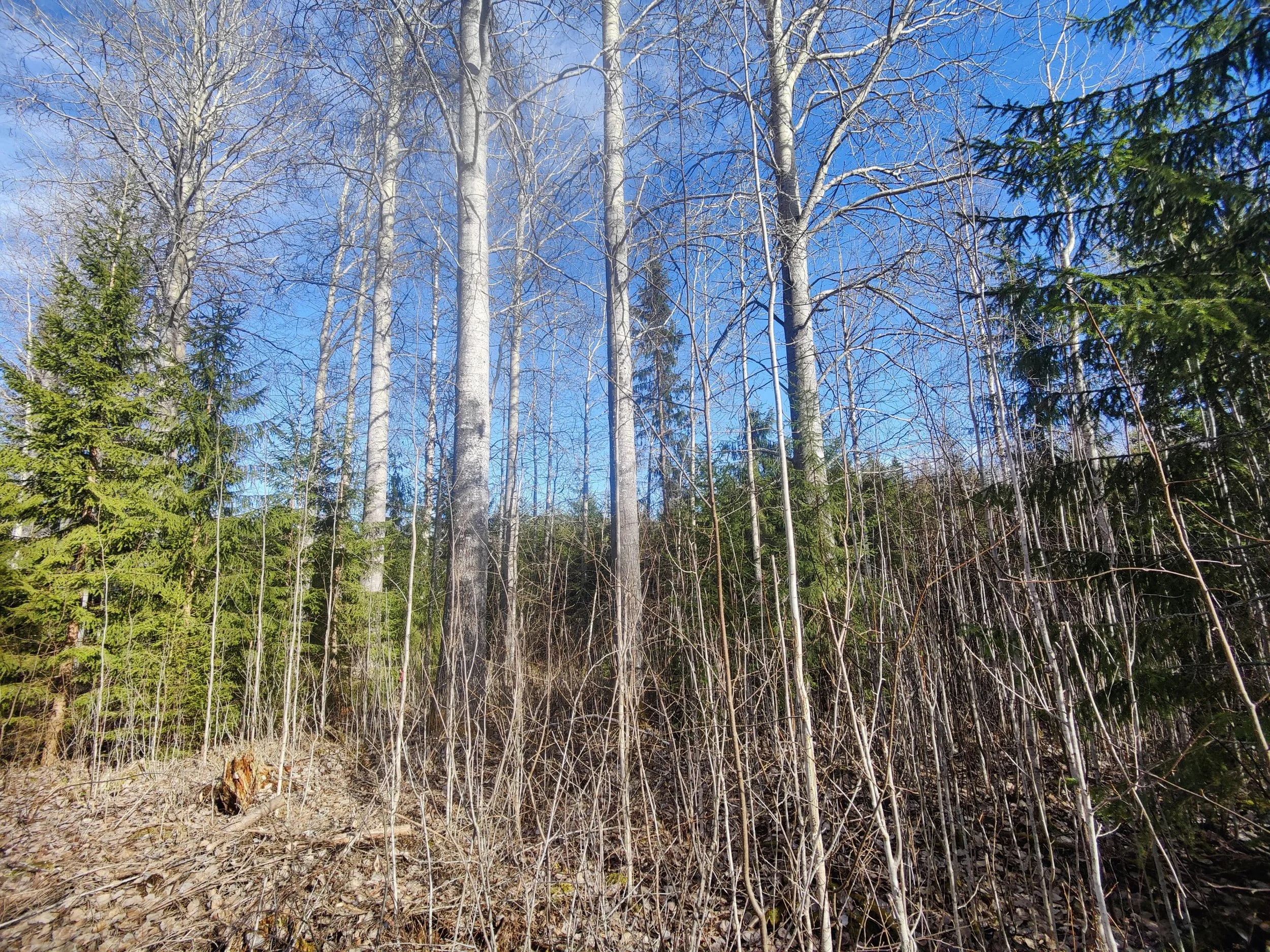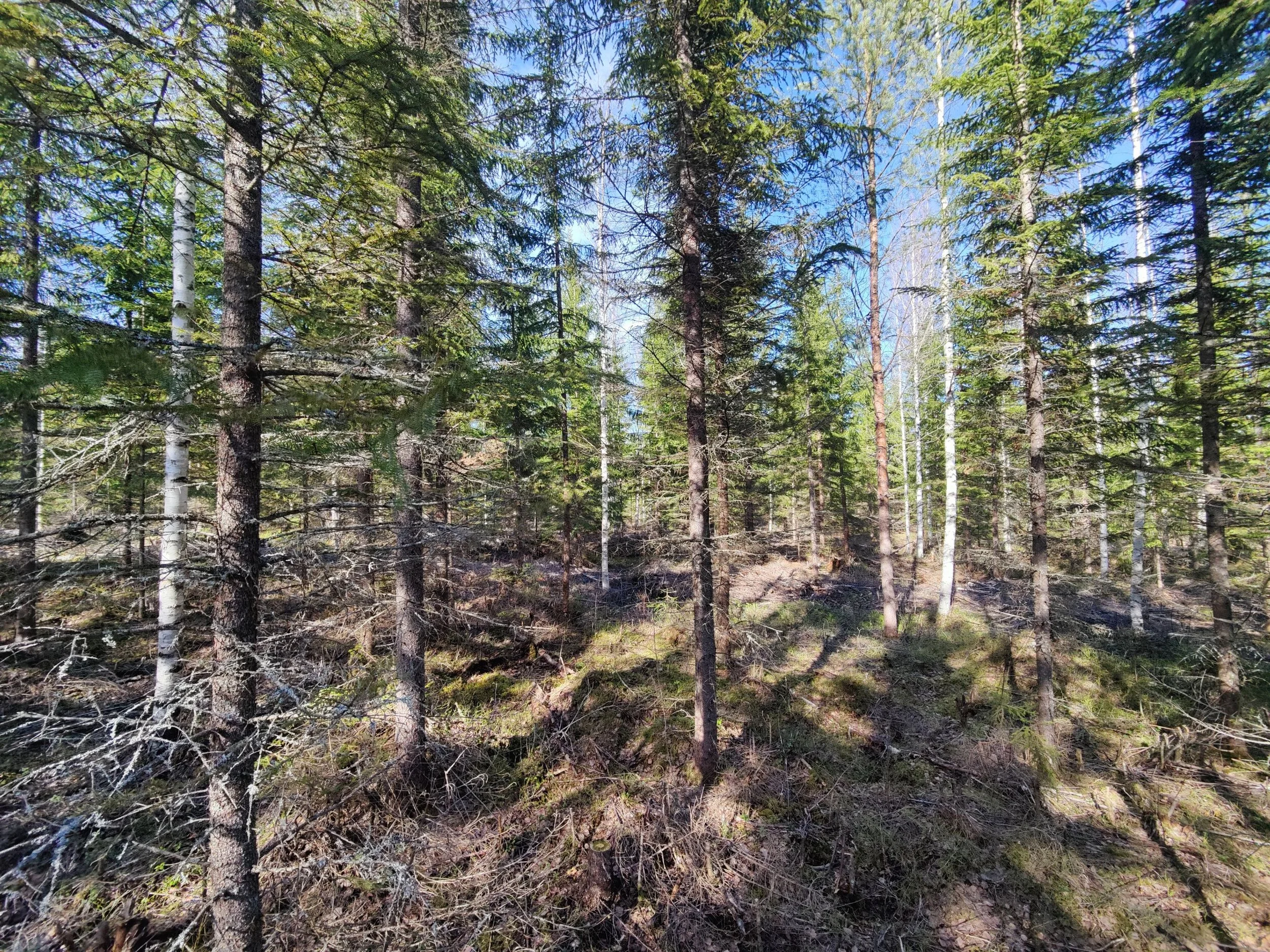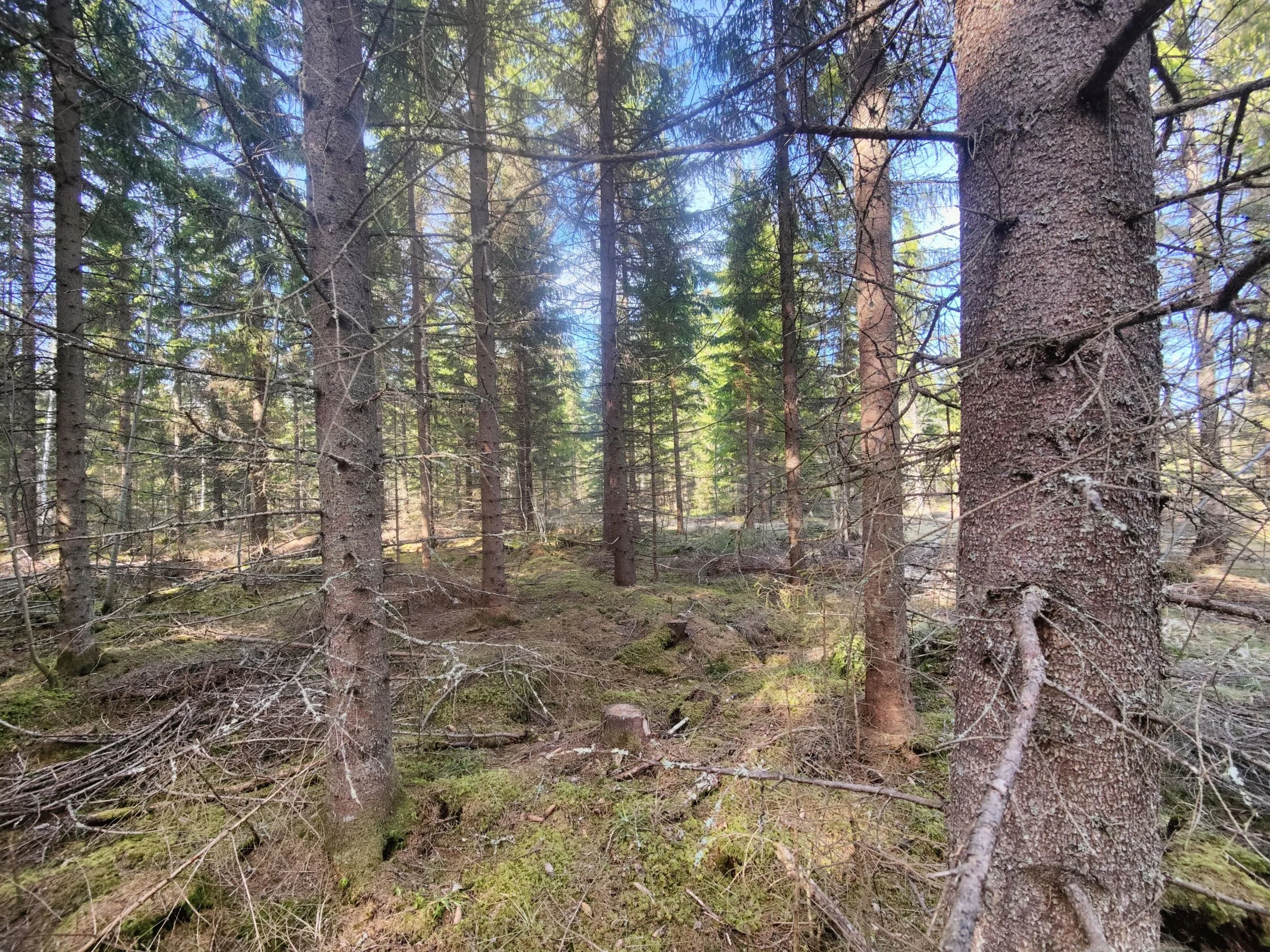 -Kuvio 15 eri-ikäinen metsikkö, joka harva nuori kuusikko, jossa paikoin haapaa päällä. Aukkopaikkoja voi halutessaan täydentää kuuselle istuttamalla. Osittainen ylispuuhakkuu tehty 2024.