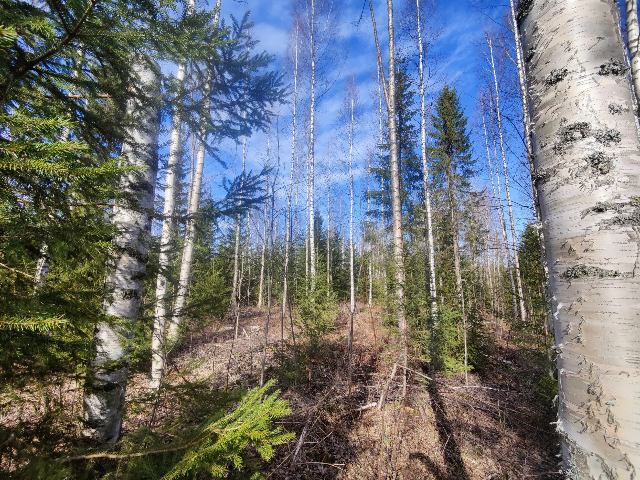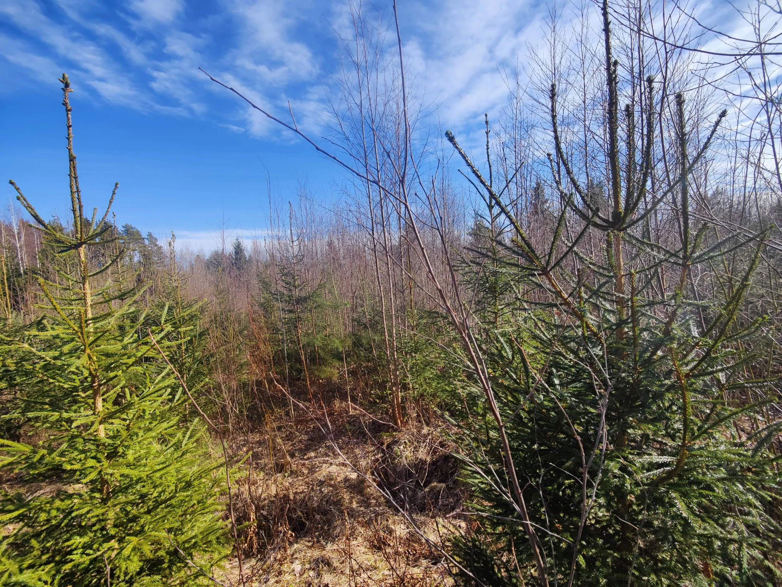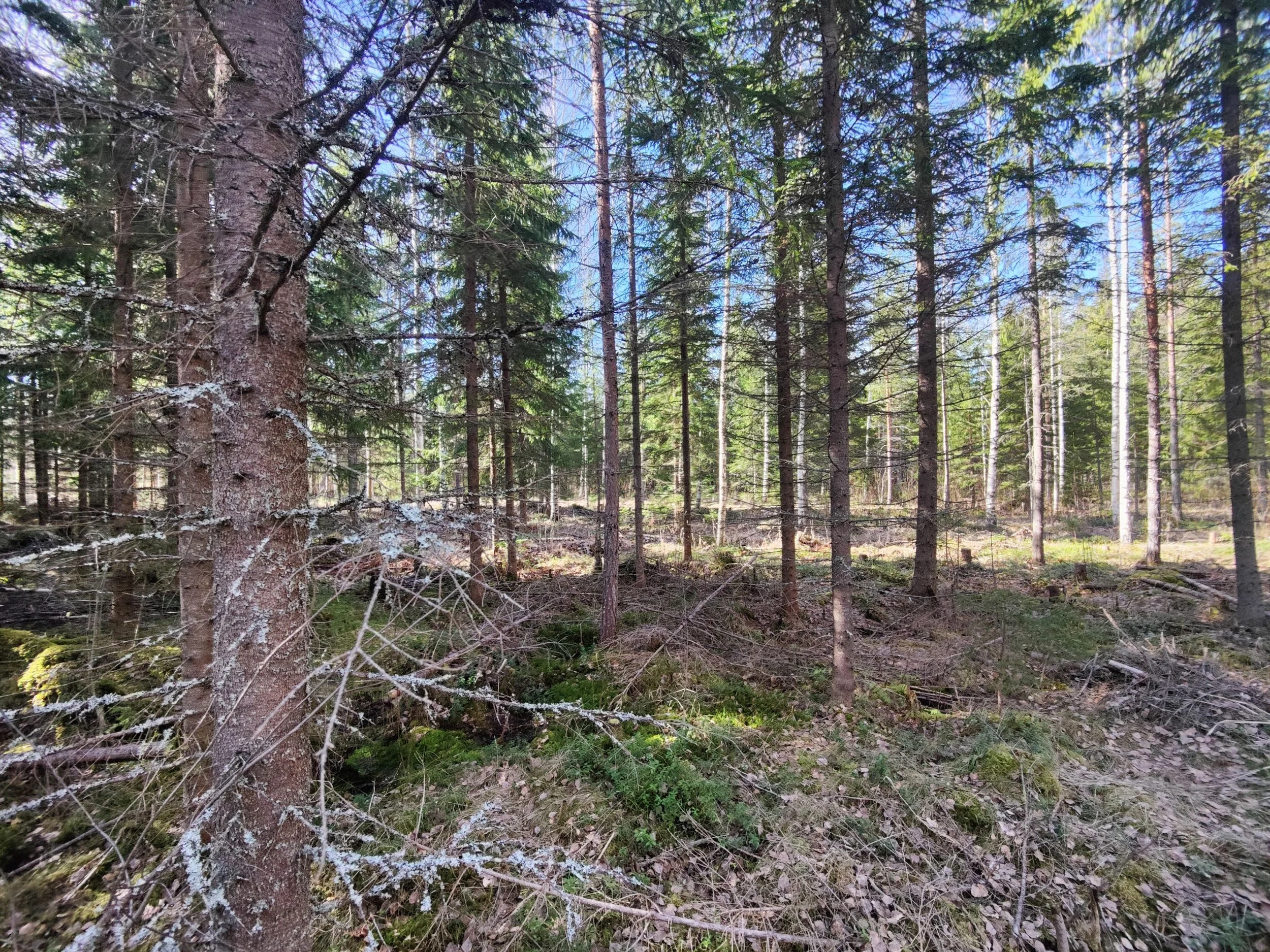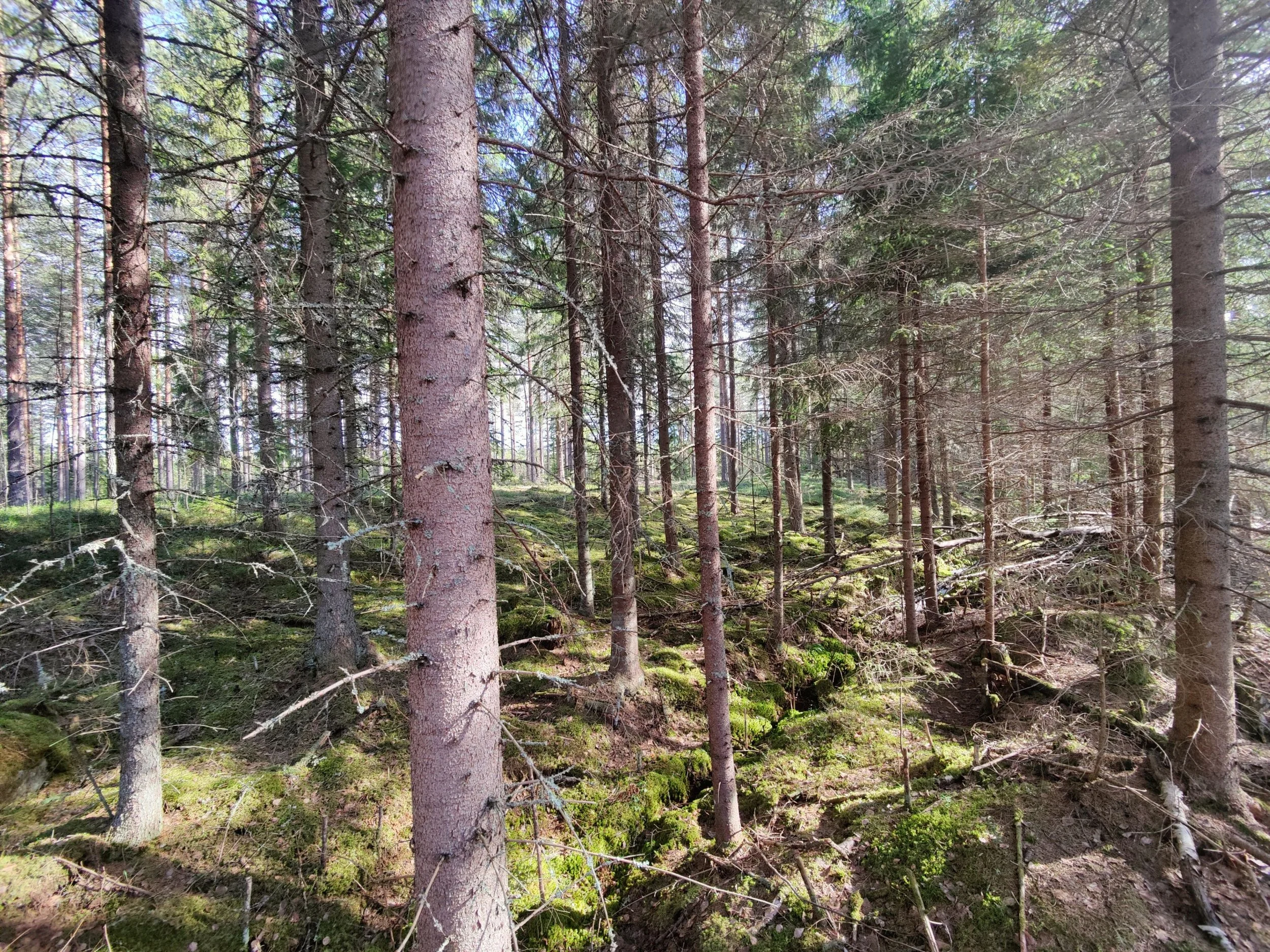 -Kuvio 15 eri-ikäinen metsikkö, joka harva nuori kuusikko, jossa paikoin haapaa päällä. Aukkopaikkoja voi halutessaan täydentää kuuselle istuttamalla. Osittainen ylispuuhakkuu tehty 2024.