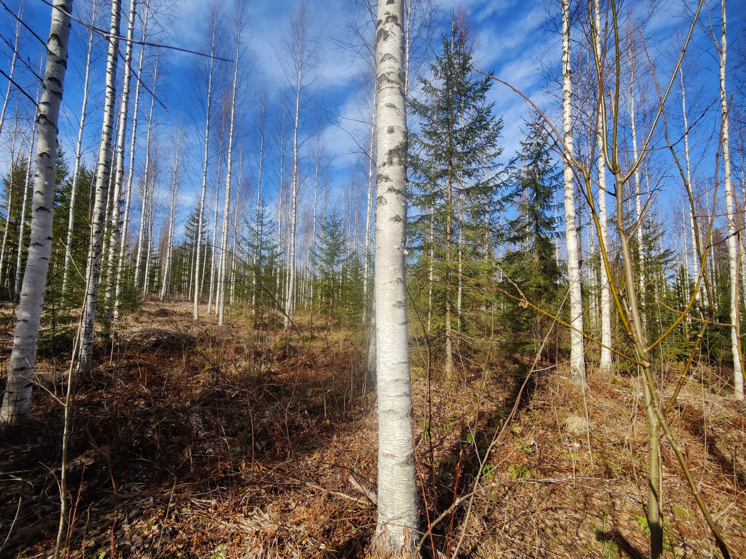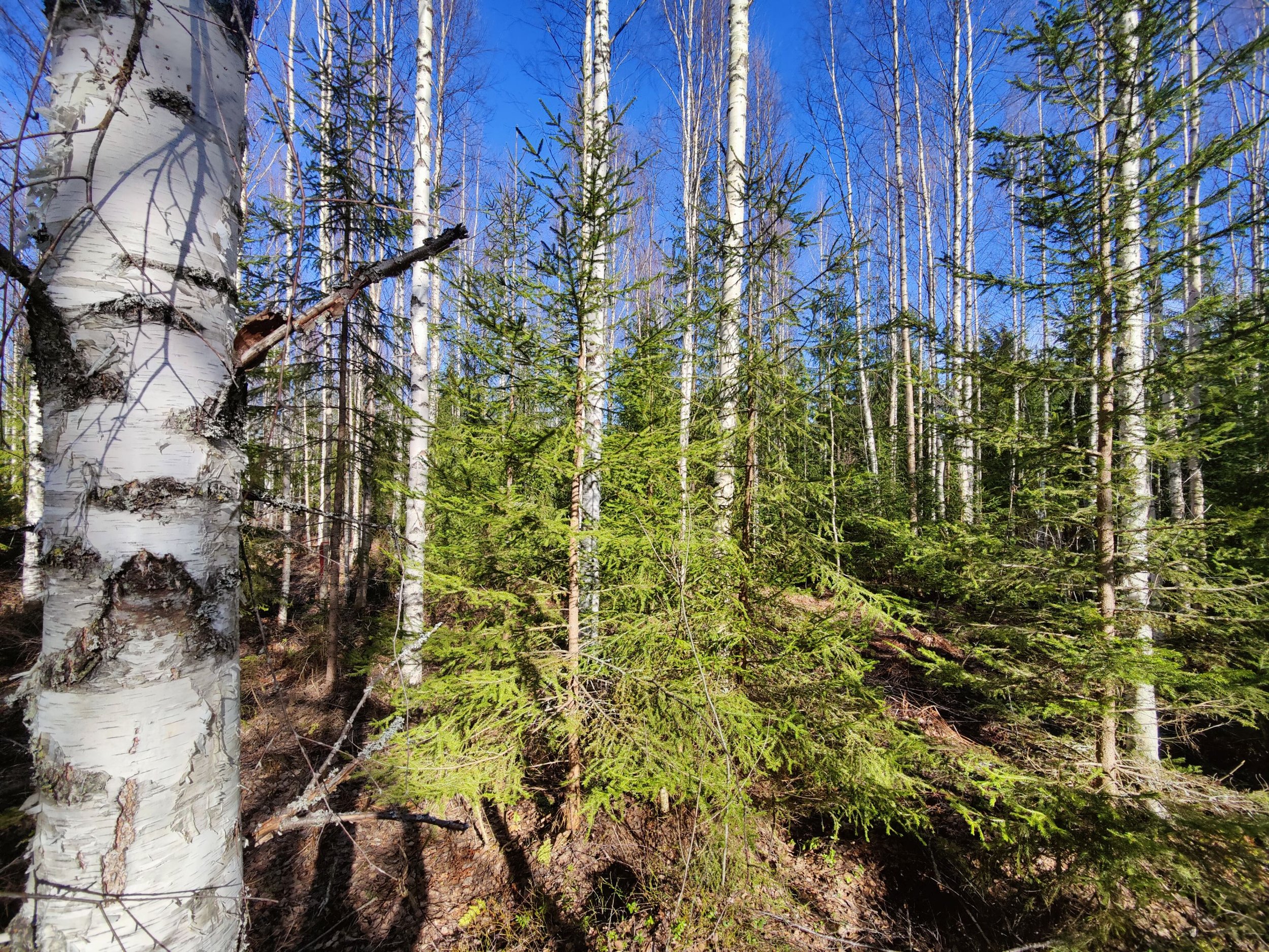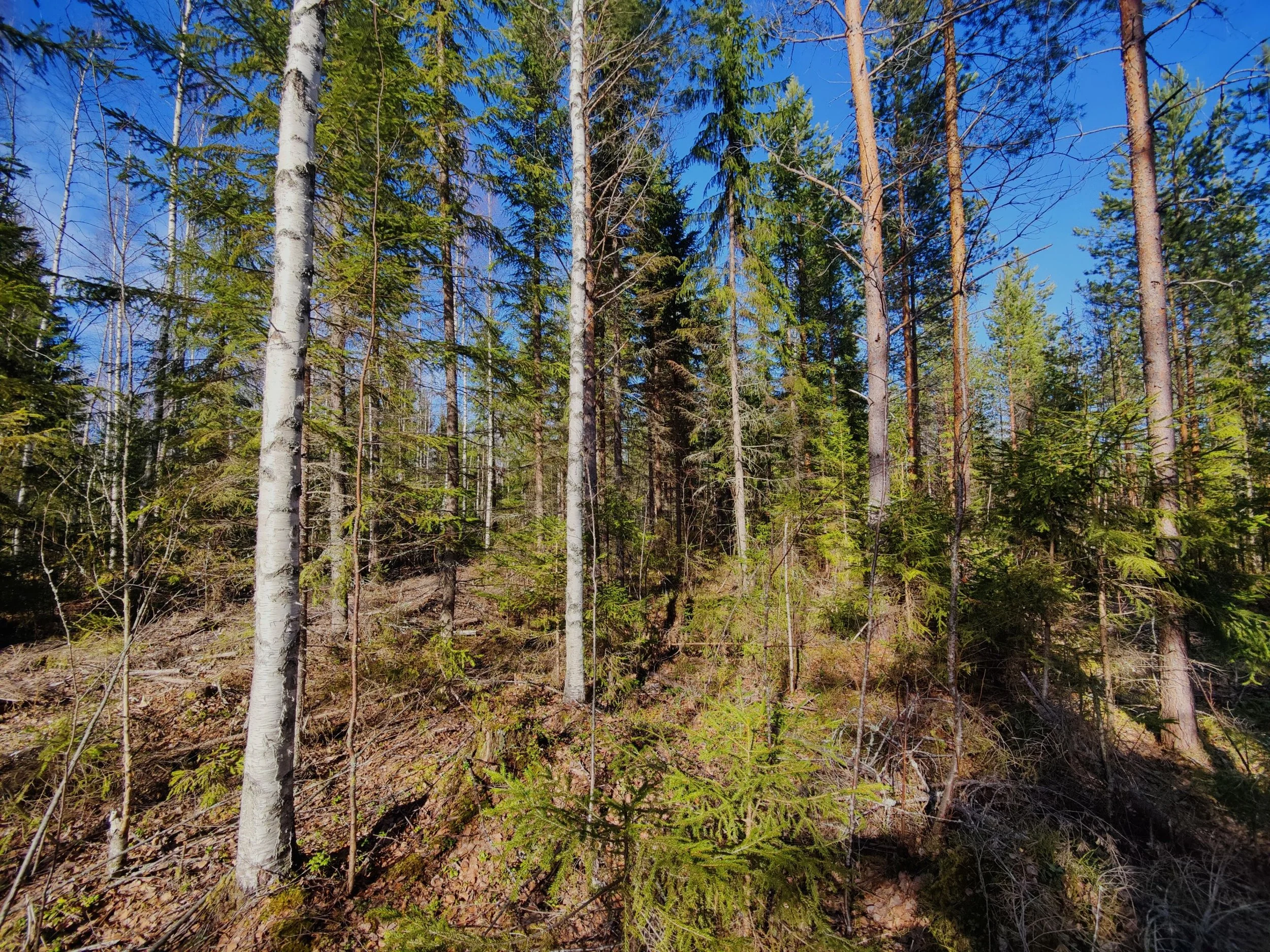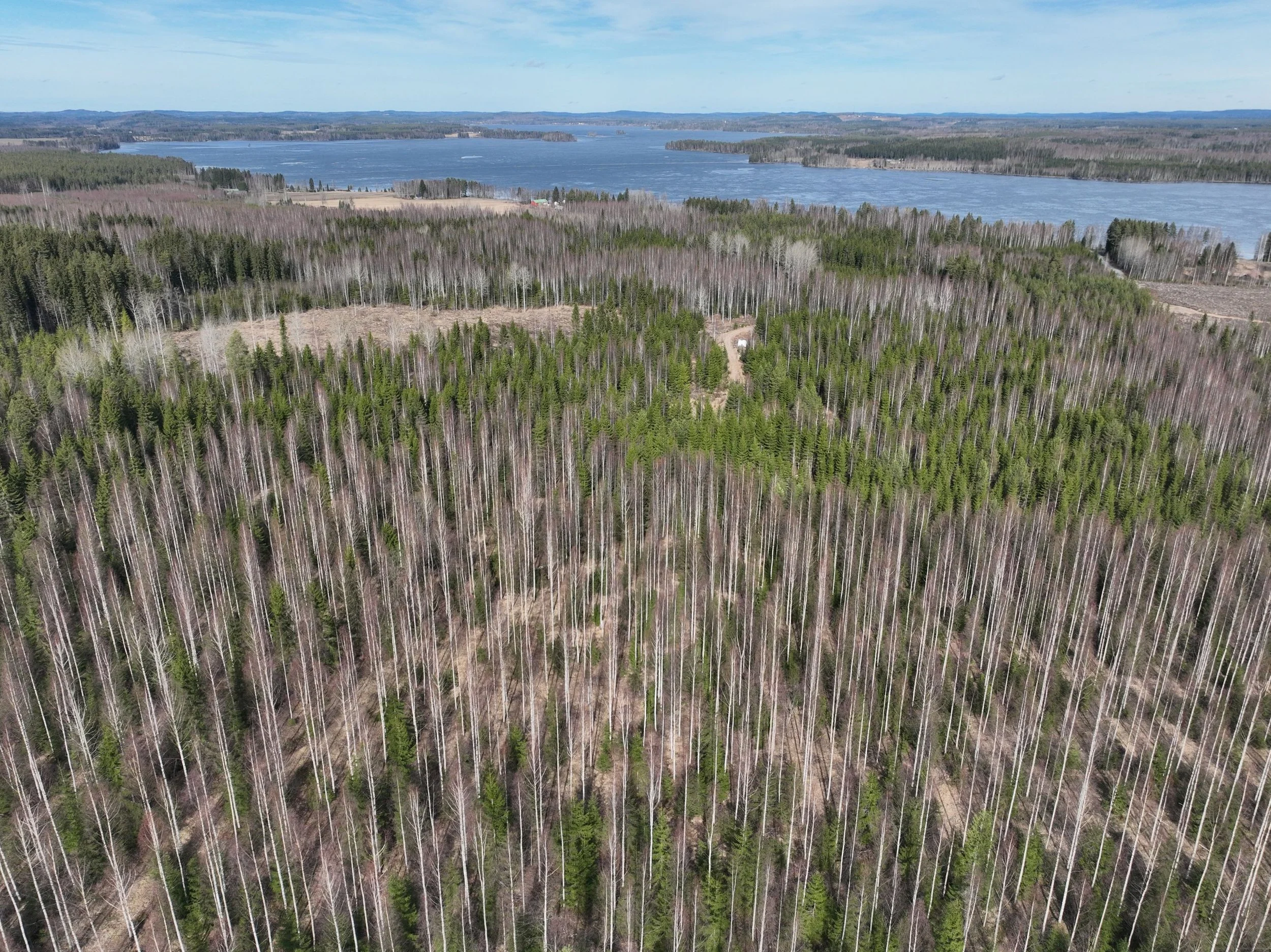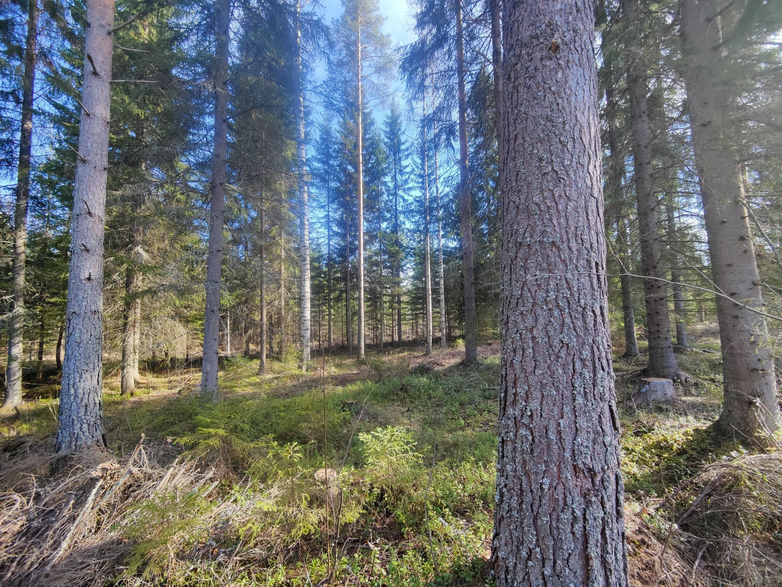 -Kuvio 15 eri-ikäinen metsikkö, joka harva nuori kuusikko, jossa paikoin haapaa päällä. Aukkopaikkoja voi halutessaan täydentää kuuselle istuttamalla. Osittainen ylispuuhakkuu tehty 2024.