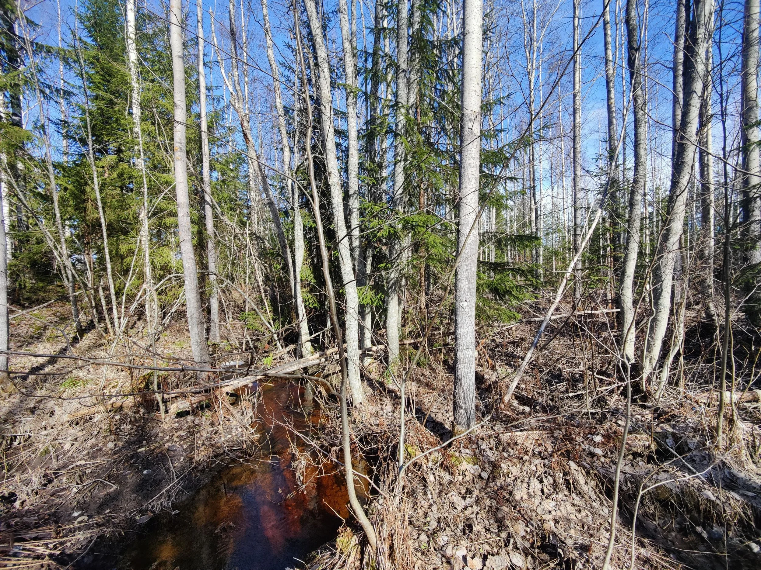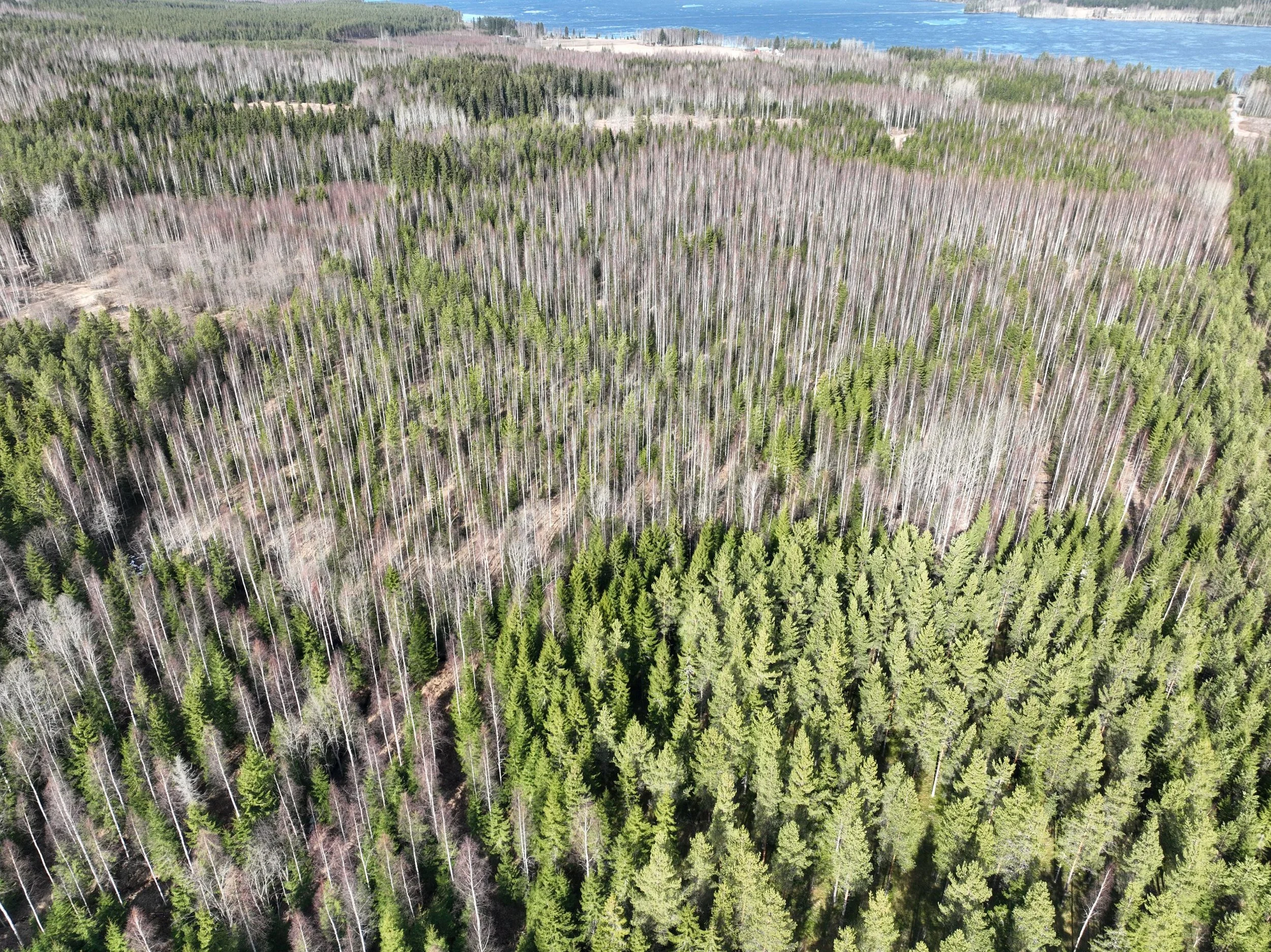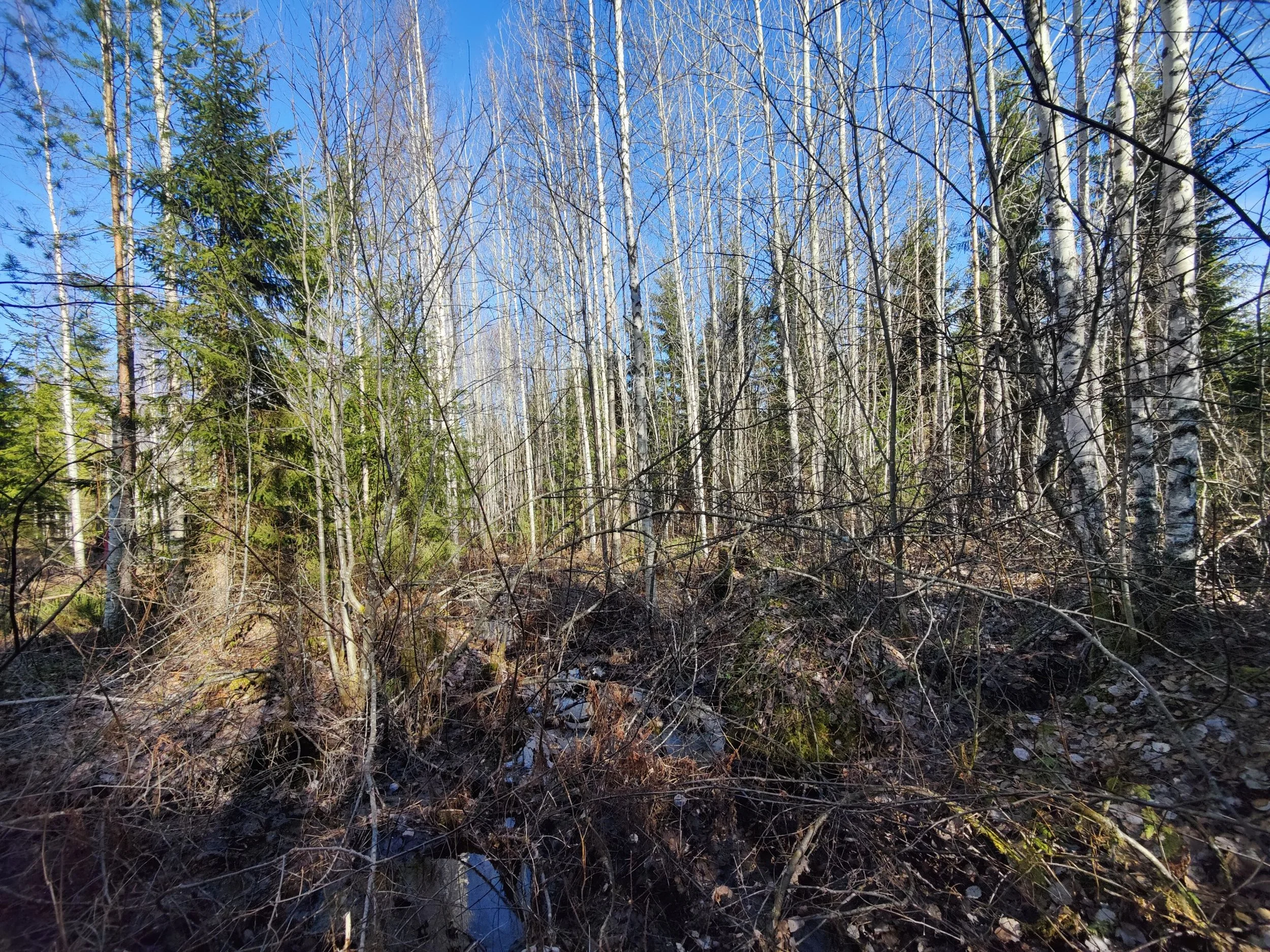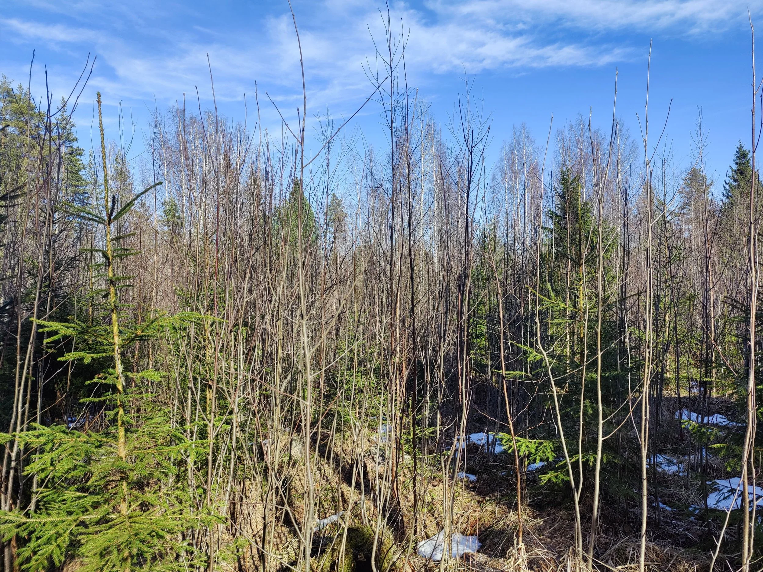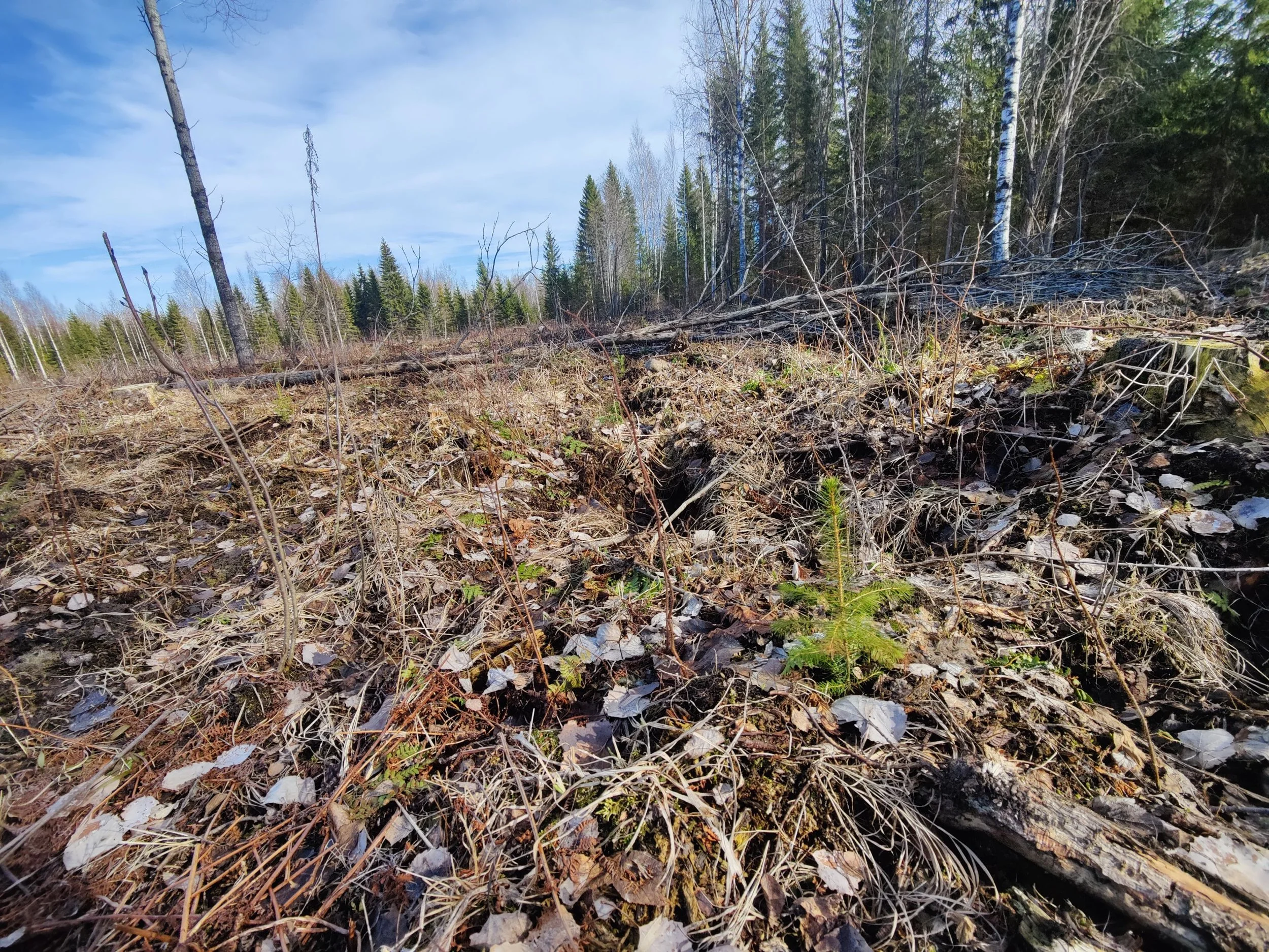 -Kuvio 15 eri-ikäinen metsikkö, joka harva nuori kuusikko, jossa paikoin haapaa päällä. Aukkopaikkoja voi halutessaan täydentää kuuselle istuttamalla. Osittainen ylispuuhakkuu tehty 2024.