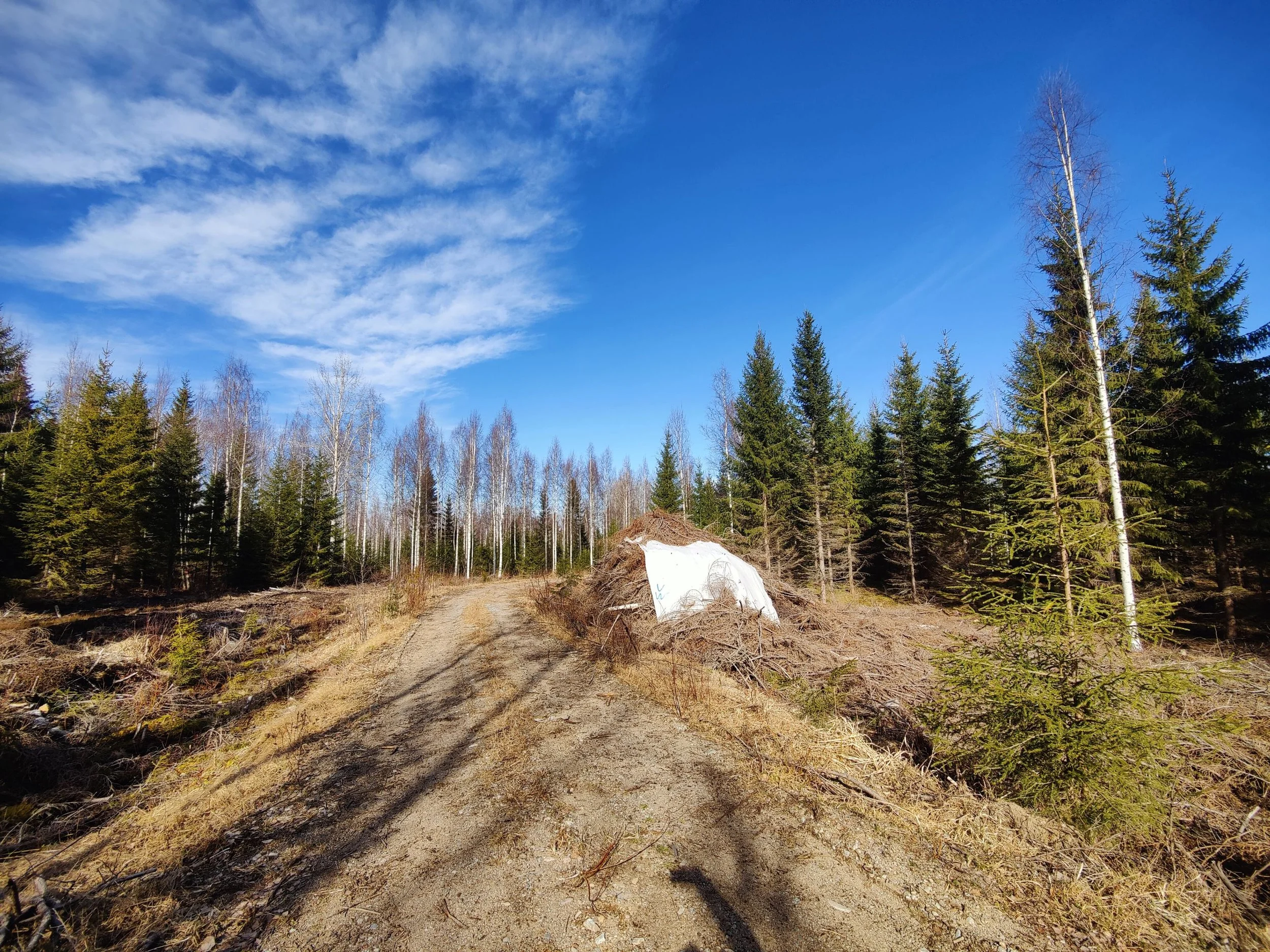 -Oman tien varressa hakkuutähdekasan perä, joka lähtee puun ostajan toimesta viimeistään talvella 2026/2027